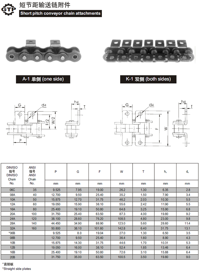 短節距輸送鏈附件Short pitch conveyor chain attachments