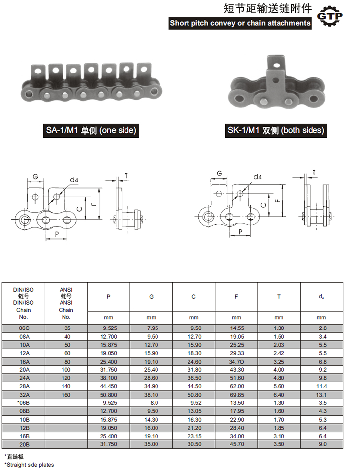 短節距輸送鏈附件Short pitch conveyor chain attachments